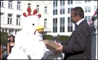 לאחר מסע בן 39 יום, שכלל איסוף חתימות מהציבור, הגיעה, Tasmin French, צעירה בת 23, מחופשת לתרנגולת, לפרלמנט השוק המשותף בבריסל ומסרה עצומה הכוללת 85,000 חתימות הקוראות לתיווי ברור על גבי בשר עופות בו יצויין מקום ואופי הממשק בו גדלו. הנושא צפוי לידון בקרוב בפרלמנט האירופי.