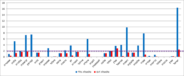 אם נמקם את ישראל בין המדינות בדו"ח, ישראל ממוקמת במקום האחרון כאשר מדובר בסלמונלה כללית ובמקום הלפני אחרון כאשר מדובר בסלמונלה אנטריטידיס + טיפימוריום.