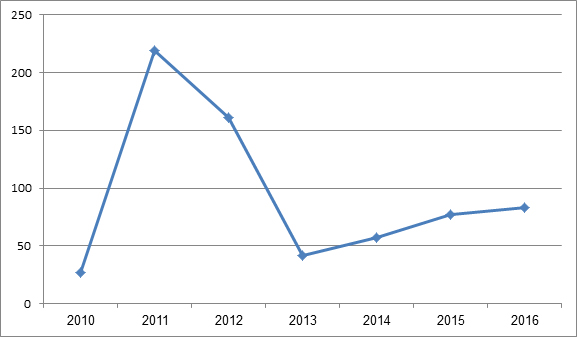בשנת 2015 לא נרשם ולו בידוד אחד. בשנת 2016 - 34 בידודים. עדיין מס' אירועים נמוך בהשוואה לשנ