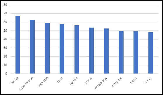 על פי הדו"ח ישראל פולטת 67.1 ק"ג של פחמן דו-חמצני/לנפש לשנה, הקשורים ליצור בשר עוף. יותר מכל מדינה אחרת בעולם.