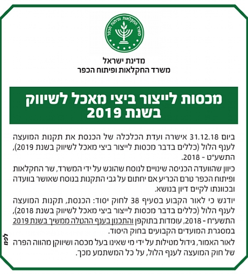 במידה ושר החקלאות לא יחתום על התקנות, יש להעריך שעד לפחות חודש מהבחירות (9 באפריל 2019), אלה לא יחתמו ועד אז....