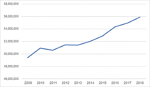 יצור תערובות עופות באירופה (טון) 2009-2018