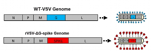 בתמונה מטה (מתוך המאמר של המכון הביולוגי) מוצג באופן סכמטי הגנום ומבנה נגיף Vesicular Stomatitis Virus (פראי).