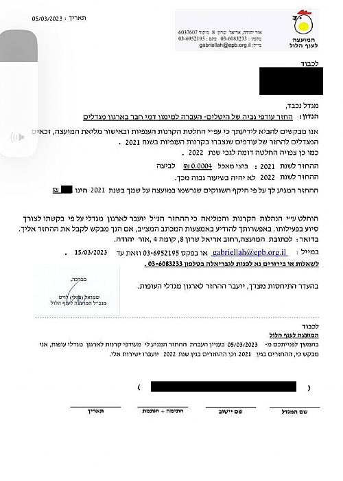 מה עושה מועצת הלול? היא מודיעה שאת החזרי הגבייה היא מעבירה לארגון מגדלי עופות ואם מישהו מתנגד עליו להודיע על כך בכתב תוך 10 ימים.